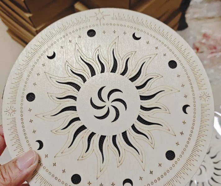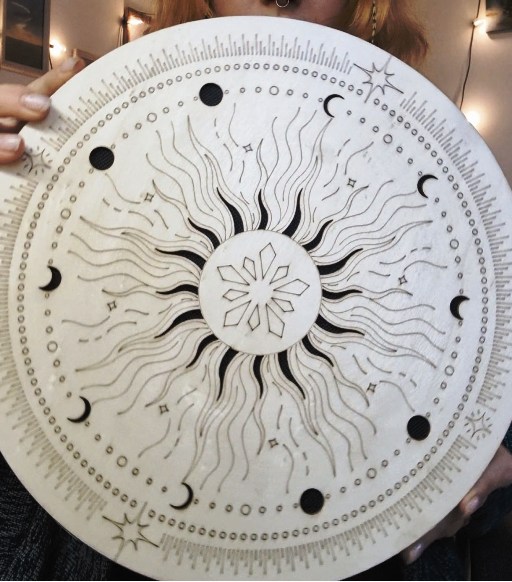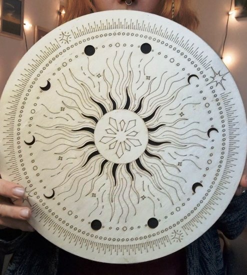 Материал: дерево Размер: 20, 25, 30 см. Водограй, дощевиця сейчас есть в наличии 20, 25, 30 см.. Цена 20 см - 1550 грн., 25 см - 2000 грн., 30 см - 2700 грн., Вселенная 30 см. (цветная) - 2900 грн., 20 см. Солнце и фазы Луны (лимитированая серия) - 1700 грн., 30 см Солнцеворот и Фазы Луны - 2950 грн.. Один из вариантов дощевицы, шума ручья, струмка, звука воды. Простой и красивый инструмент. Узор сделан с помощью лазерной резки фанеры. При проворачивании Шума слышатся звуки подающих капель воды, очень завораживающе и красиво. Отлично подойдёт для медитаций. У нас в магазине есть и более дорогие варианты этого инструмента, оригинальные инструменты со съёмной ручкой для удобства вращения и контролирования скорости вращения. Обращаем ваше внимание, что именно эти инструменты идут без съёмных ручек (более простой вариант), однако это никак не влияет на качество звука. Звучание волшебное. Также смотрите на нашем сайте другие виды круглых дощевиц 25 см. с ручками.