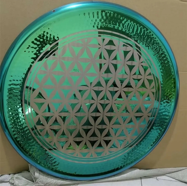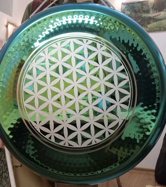 Гонг зелёный Цветок Жизни. Зеркальный с загнутыми краями