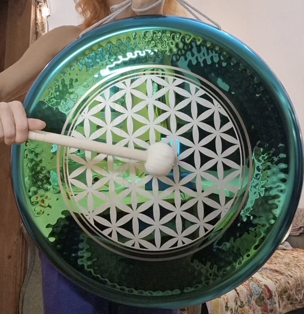 Купить Гонг зелёный Цветок Жизни. Зеркальный с загнутыми краями (Киев) из раздела Бубны чаши гонги, др.: 19000 грн.Заказать